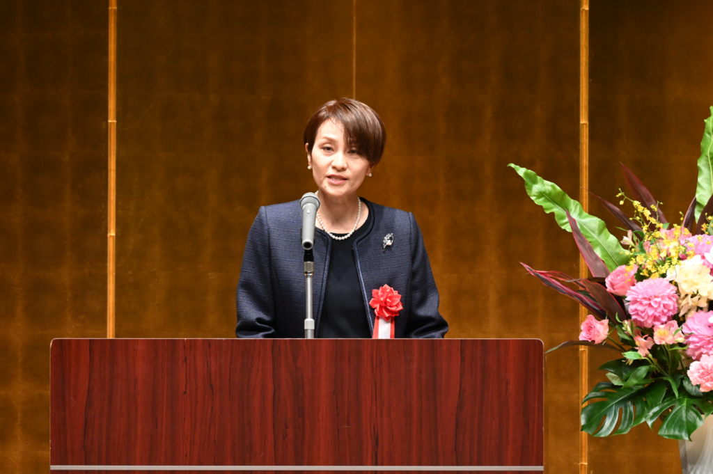 被表彰者を代表して、小松市手をつなぐ育成会「こぶし青年教室」会長の中野晴美さんが御挨拶され、団体の活動に込められた思いや現在の活動の様子についてお話しされました。また、今後の展望については、「新しいことを学び、挑戦する彼らの目の輝きや笑顔は、障害のある本人の人生をより豊かなものにしてくれると信じ、活動を更に発展させられるよう、本人たちと歩みを進めていきたい」とお話しいただきました。